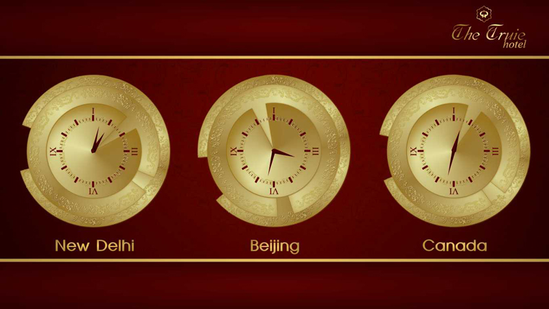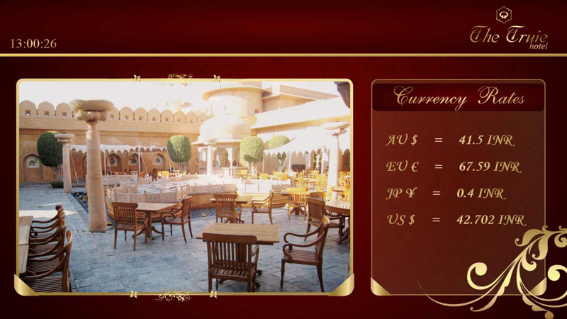 Screen at the reception desk, can be used to display different time zones of different countries dynamically which means